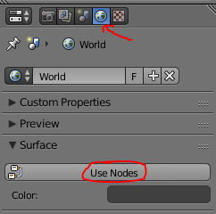 Since we also want to render the background footage so that it’s reflection is caught in the class we need to change the “world”-settings. In the “world-tab” open up the section “surface” and click on the “use nodes”-Button.  Then click on the small button right to the color and select “Image-Texture” from the pop up menu. Select the AVI-file we created earlier, set the amount of frames, start frame and AutoRefresh. Make sure you set Vector to “Texture Coordinate | Window”.