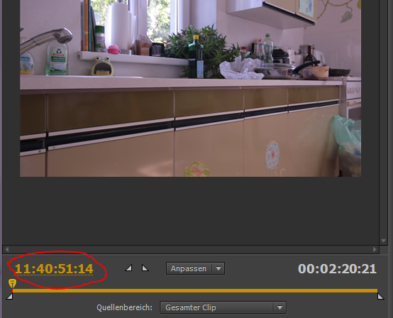 As soon as you hit <ENTER> to confirm the value the time code calculates correctly to: 11:41:08:20. Now set the IN-POINT by clicking on the button right next to the time code.