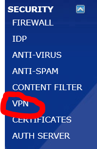 We log on to the ZyWALL35 Configuration Website and select VPN from the “Security”-Menu.