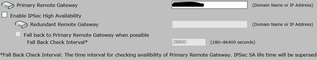 Under “Primary Remote Gateway” we provide the public Azure Gateway IP-Address. In our home scenario we leave IPSec High Availability unchecked.