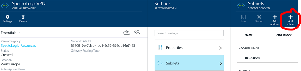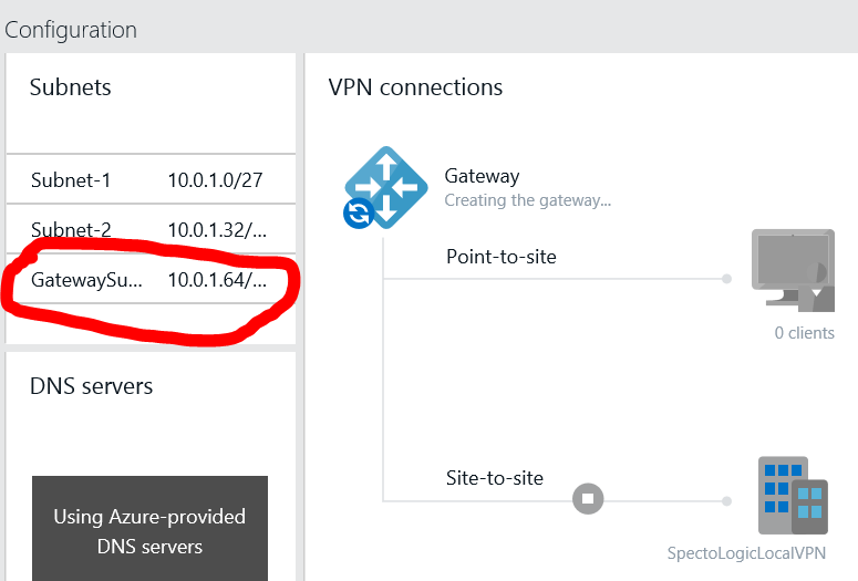 We can now see the new automatically added subnet “GatewaySubNet”: